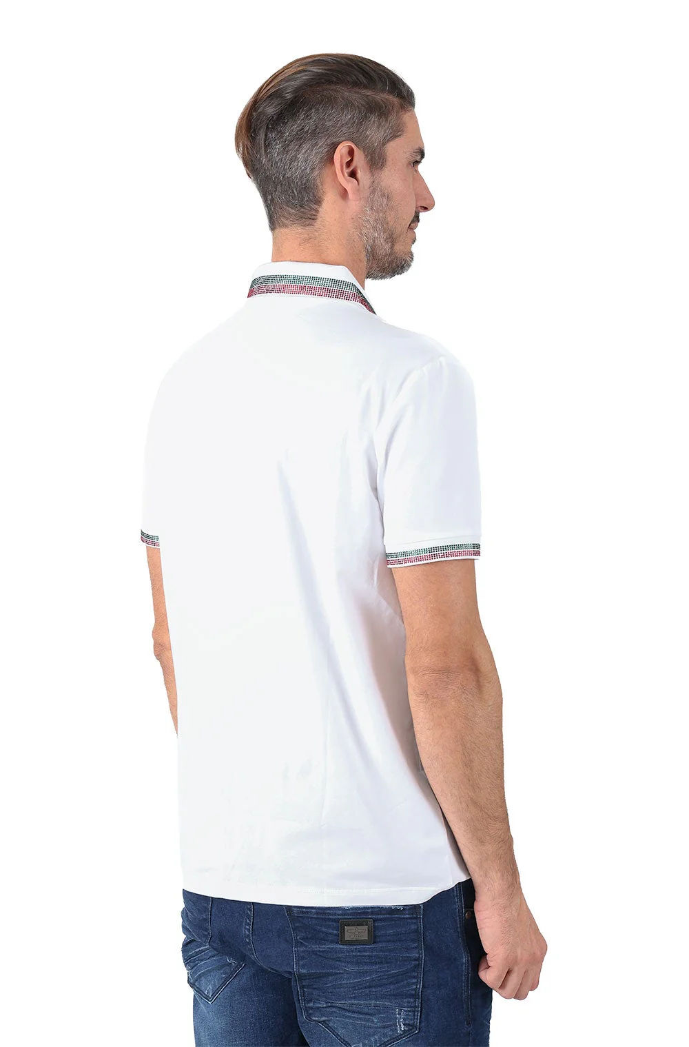 Barabas men's green and red rhinestone short sleeve polo shirts are a game-changer in the fashion world. It has an original design, red and green rhinestone on the collar and sleeves.