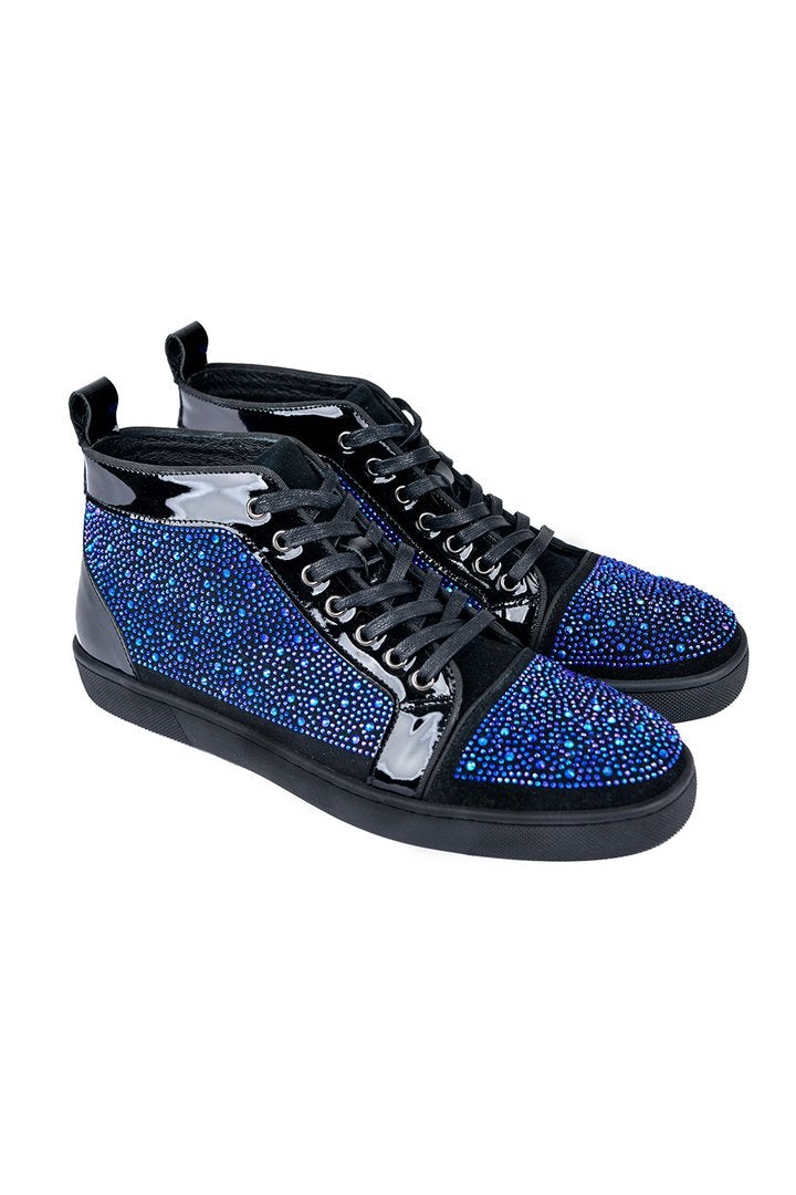 Barabas men's luxury camo and leopard design rhinestone diamond high-top lace-up sneakers. Colorful and gold spikes make this sneaker outstanding. This is BARABAS Design - you're go-to for all the latest trends, no matter who you are, where you're from, and what you're up to.