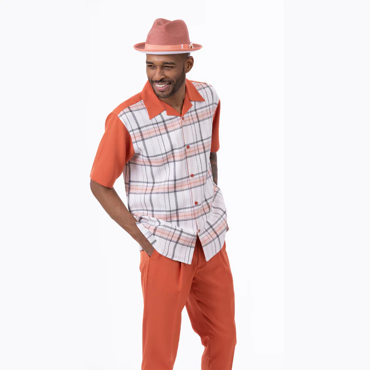 Papaya Plaid Walking Suit 2 Piece Short Sleeve Set 2304
