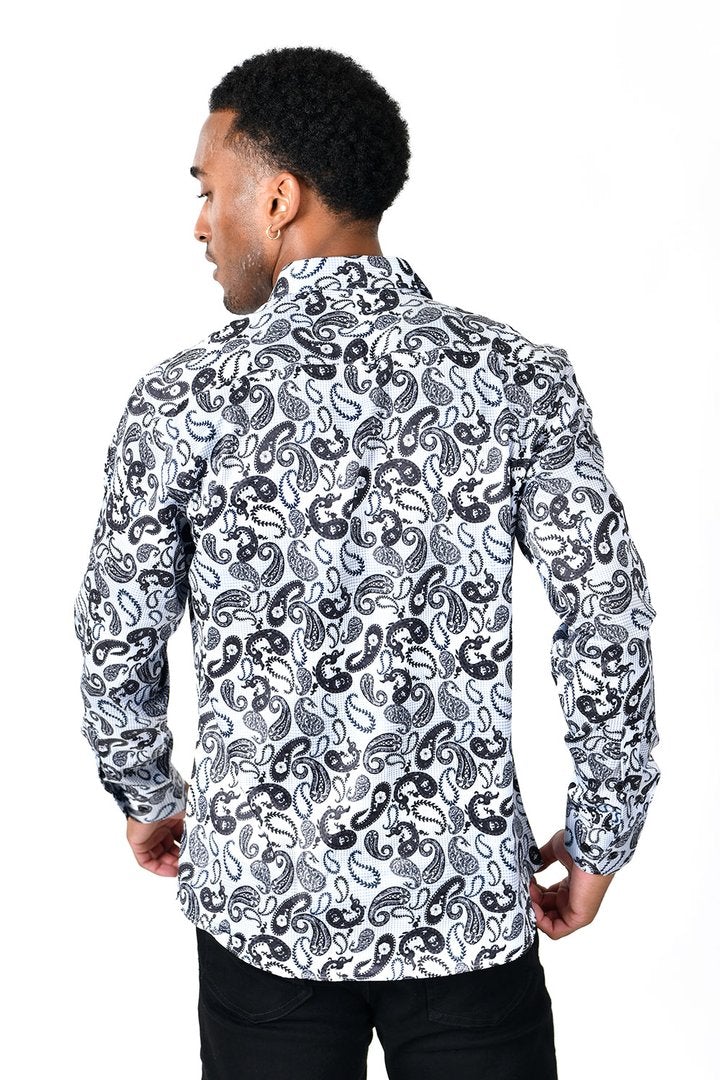 A printed classic paisley design button-down shirt adds an updated feel to this long sleeve shirt by Vassari. Moisture-wicking aids in dryness while mesh details work to protect your skin and provide enhanced ventilation.